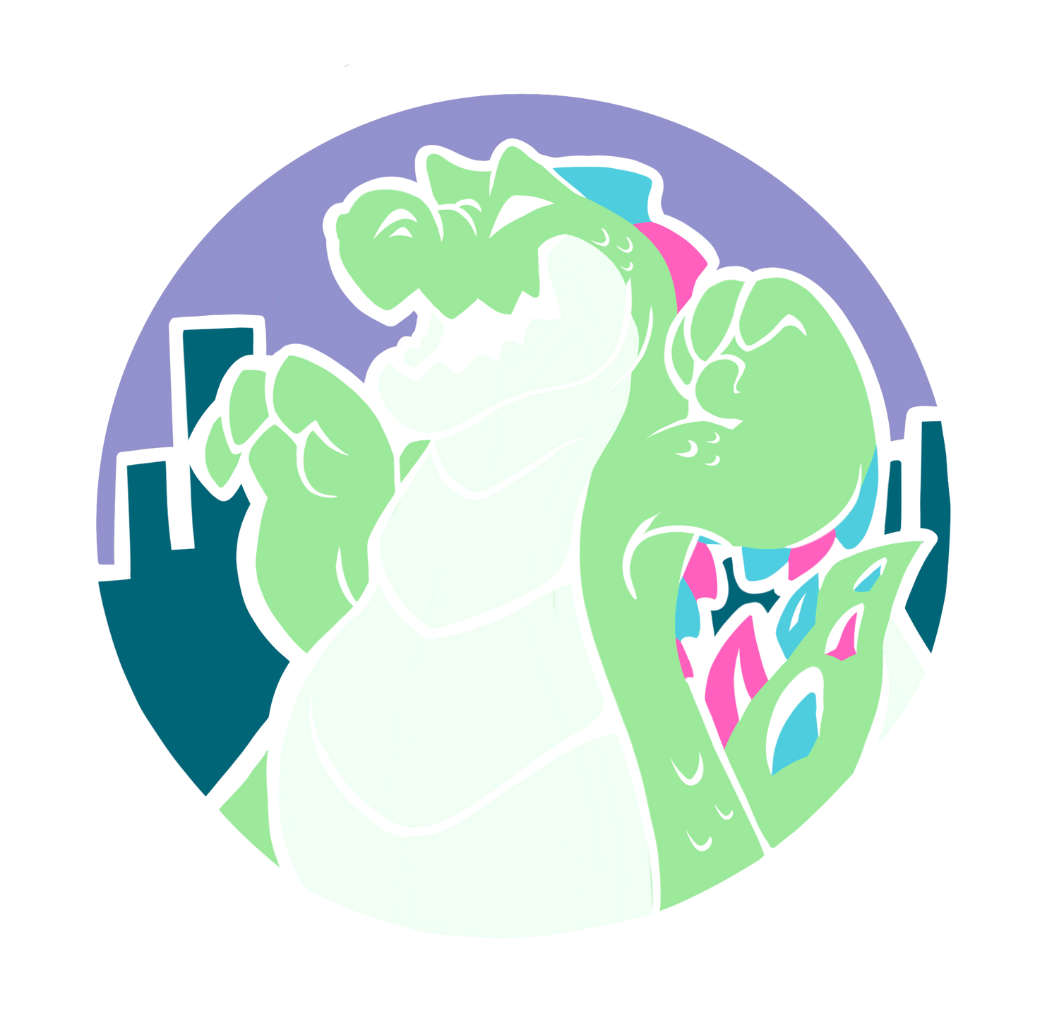 My mascot here is, Gummy! The chewable kaiju character and mischevious critter behind the name. Better keep an eye out around here. He likes to romp around the city and doesn't always watch where he steps.