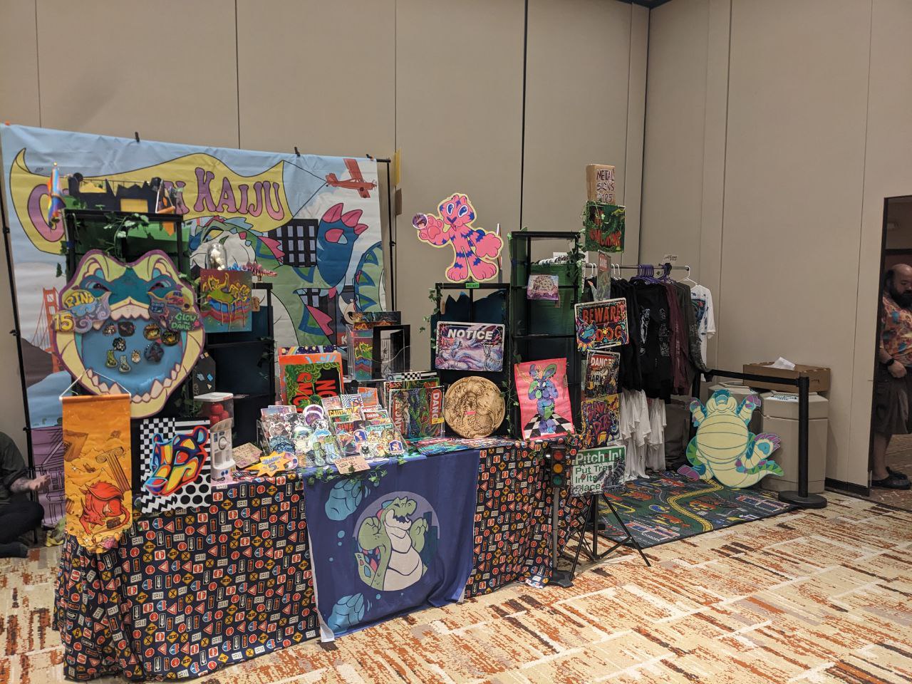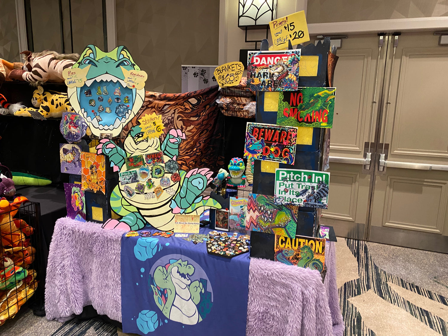 Prints, metal signs, blankets, pins, and stickers. Everything listed on my website is part of the stock that will be for sale at con.