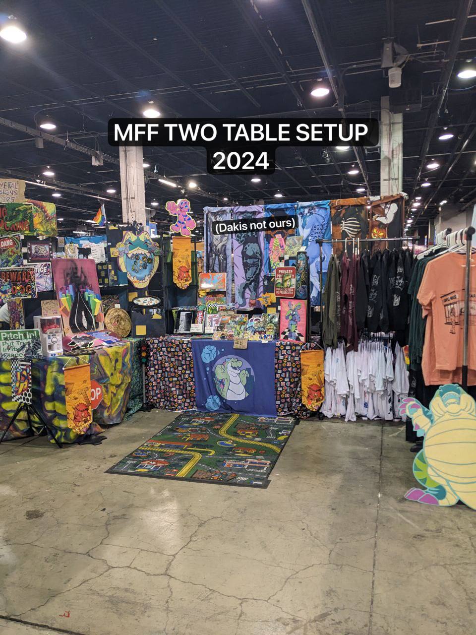 Everything at the booth is made in-house and designed by our crew, from the display signs to the shirts, to the banners and the prints.